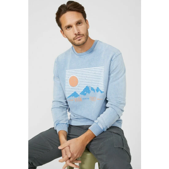 Acid Wash Roam Free Sweatshirt from Mantaray. Elevate your style this season and choose this must-have men’s sweatshirt. Boasting soft long sleeves with cuff detailing, a circular cut neckline, a cool logo print design and a tailored cut finish for the optimal fit. Crafted from 100% Cotton. Wash at 40. Model wears a Size M.