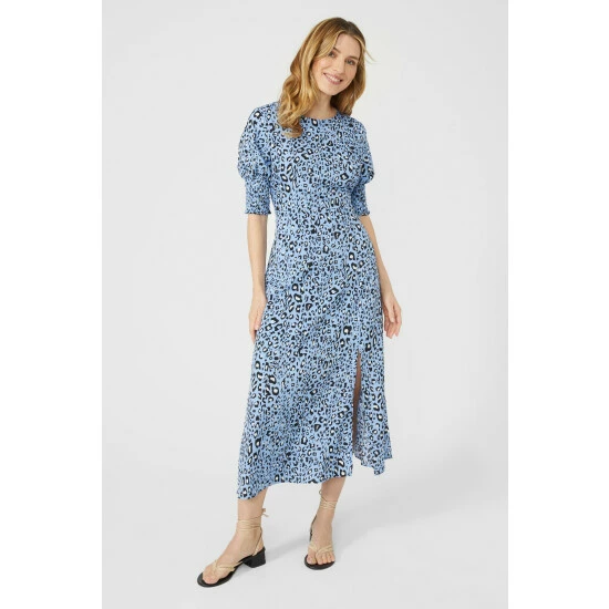 Animal Printed Puff Sleeve Midi Dress