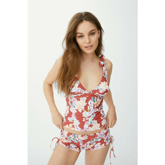 Printed tankini top from Debenhams. Featuring a flattering V-neck and tie up straps, this vibrant tankini top will brighten up your swimwear collection. Mix and match with the coordinating pieces available for a complete swim look that fits your style.