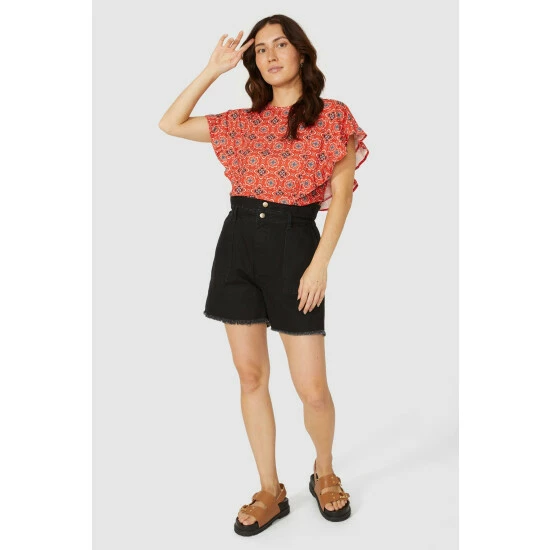 Batwing Geo Print Scoop Neck Top