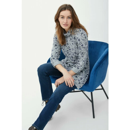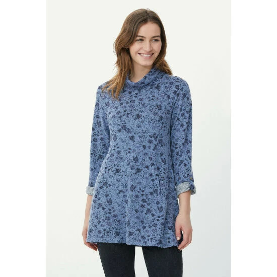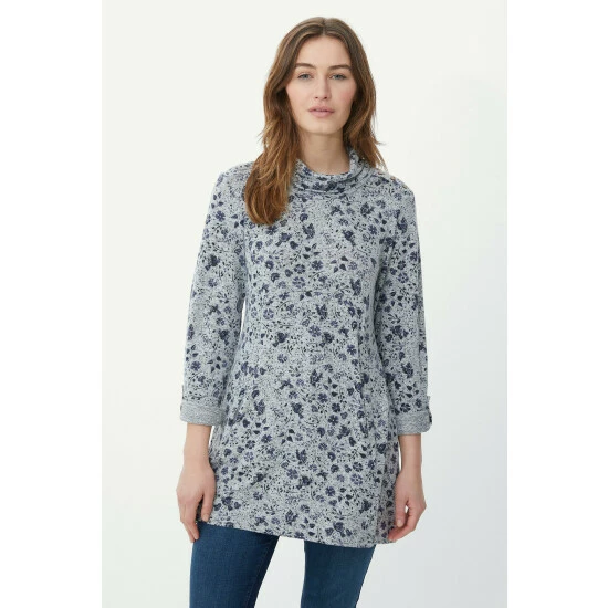 Printed cowl neck tunic from Mantaray. Crafted from a soft viscose jersey with a touch of elastane to ensure a comfortable fit, this tunic top features a cosy cowl neck, rolled-up sleeves and a handy kangaroo pocket on the front. Wear with skinny jeans and your trusted hiking boots for weekend walks. Other colours also available.