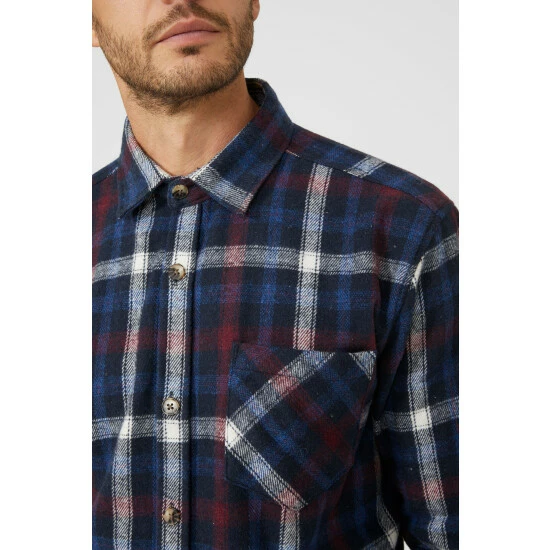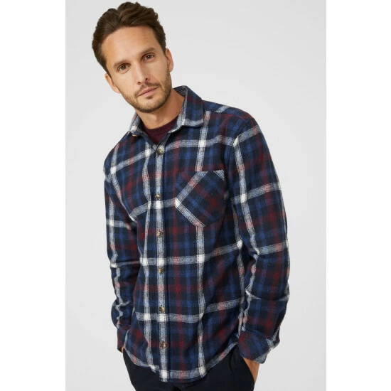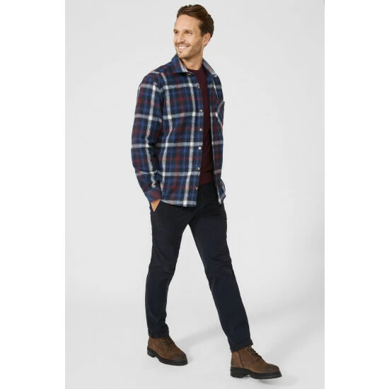 Box Check Overshirt from Mantaray. Smart in aesthetic and easy-to-style with many looks, shop this statement men’s overshirt. Boasting long buttoned-cuffed sleeves, a smart collar neckline, front button detailing, a small front pocket and a tailored cut finish for the optimal fit. Crafted from 70% Acrylic, 15% Cotton, 15% Polyester. Wash at 30. Model wears a Size M.