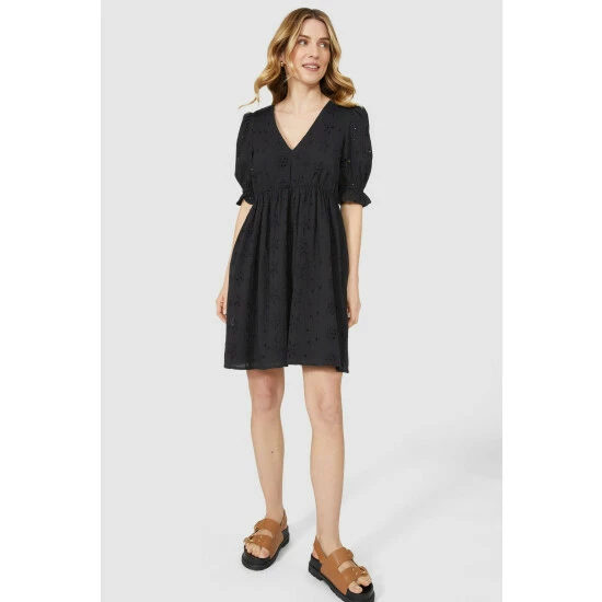 Broderie Trim Dress from Mantaray. Dress effortlessly chic and refresh your look with this beautiful women’s dress. Featuring a pretty broderie design, short-ruffled sleeves, and an open back tassel tie. Complete the look with lightweight clogs and a statement bag. Crafted from 100% Cotton. Wash at 30. Model wears a size 10.