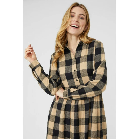 Brushed Check Button Through Midi Dress from Mantaray. Modify your everyday wear look with chic styles crafted from premium fabrics and select this check print tunic dress for women. Featuring long soft sleeves with button cuffs, a smart collar neckline, front buttons, and a flattering check print finish. Made from 100% Cotton. Wash at 30. Model wears a Size 10.