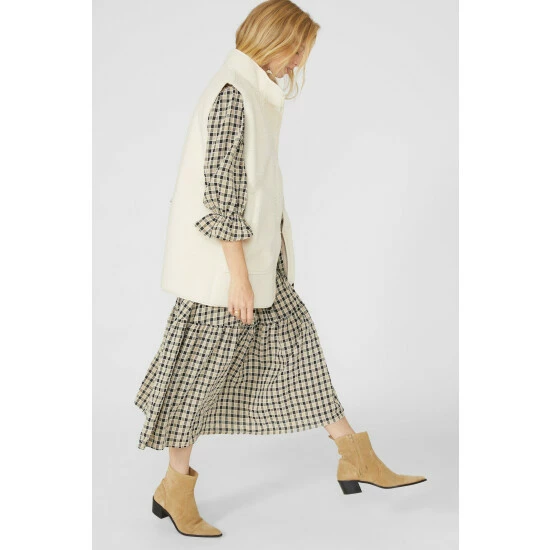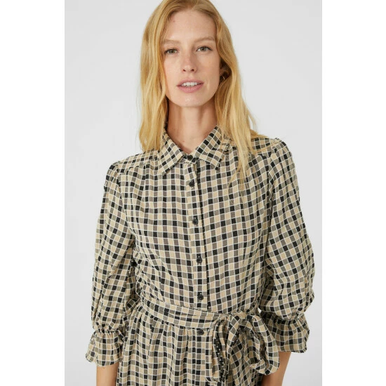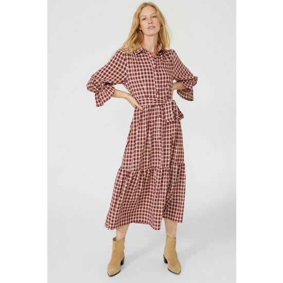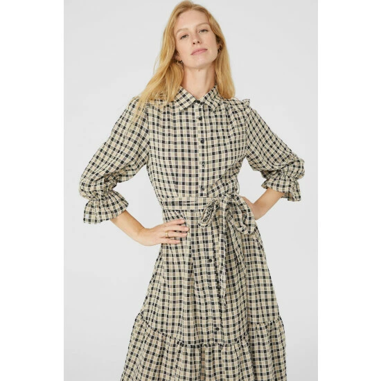 Check Tier Belted Midi Dress from Mantaray. Beautifully chic and unapologetically refined, opt for this figure-flattering women’s belted midi dress. Featuring elegant puff-style sleeves with frill cuff embellishments, a smart collar neckline, front button detailing, a self-tie belt to cinch the waist and a check print pattern finish. Team with suede ankle boots and a super-soft jumper for the perfect ensemble. Made from 60% Polyester, 40% Viscose. Wash at 30. Model wears a Size 10.