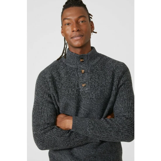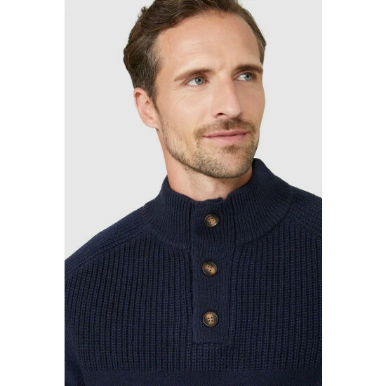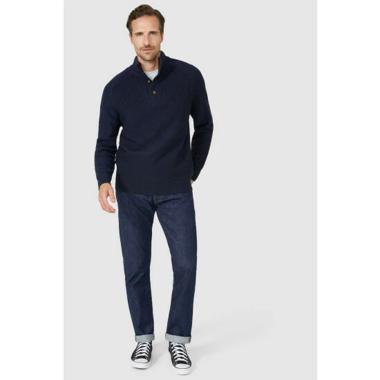 Contrast Rib Button Neck Turtle from Mantaray. Easy-to-style with any outfit and super warm in texture, update your menswear attire with this turtle-neck jumper from Mantaray. Boasting long fitted sleeves, a cosy high cut neckline, horn button detailing and a tailored cut finish for a cosy fit and feel to the body. Made from 90% Acrylic 10% Wool. Wash at 40. Model Wears Size M.