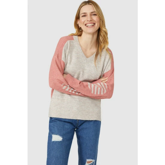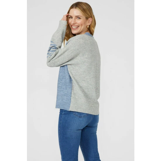Contrast Sleeve Button Through V Neck Jumper from Mantaray. Chic in style and crafted from super-soft fabrics, look to this beautiful women’s V neck jumper. Featuring long soft sleeves, a modest V cut neckline and a tailored cut finish for the perfect warm fit. Made from 66% Acrylic, 32% Nylon, 2% Elastane. Wash at 40. Model wears a Size 10.