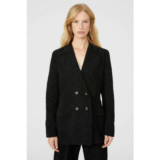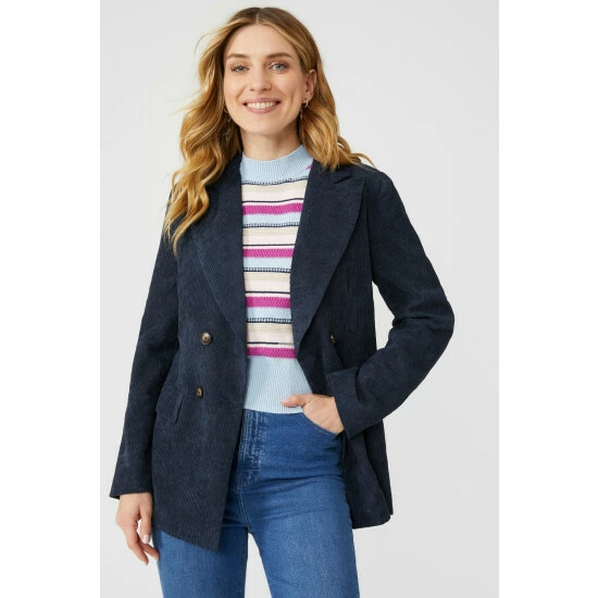 Cord Double Breasted Blazer from Mantaray. Refresh your occasionwear attire with statement styles made from luxe fabrics and opt for this classic women’s blazer jacket. Featuring long structured sleeves, chic horn button detailing and a tailored cut finish for the optimal body fit. Made from 100% Polyester. Wash at 30. Model wears a Size 10.