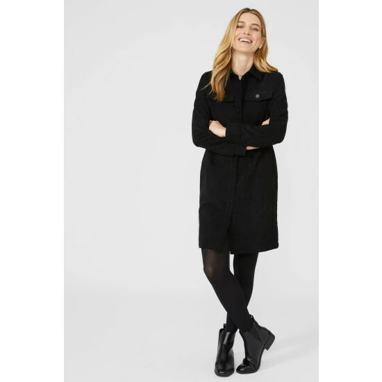 Cord Shirt Dress from Mantaray. Figure-enhancing and effortlessly refined in style, look to this gorgeous women’s shirt dress today. Boasting long comfortable sleeves, a smart collar neckline, front button detailing, top front buttoned pockets and a tailored cut finish for a shapely silhouette. Complete the look and style with a buckle belt and knee-high leather boots. Made from 100% Polyester. Wash at 30. Model wears a Size 10.