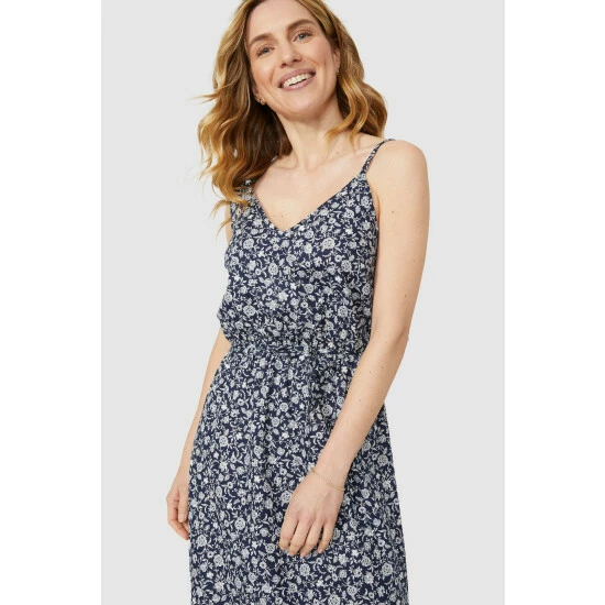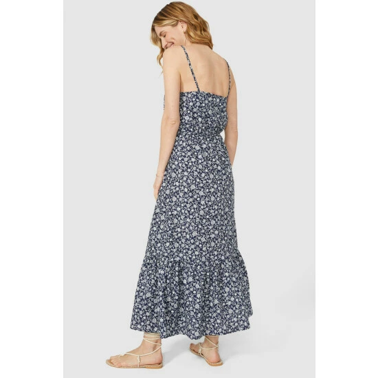 Cotton Ditsy Strappy Tiered Belted Maxi Dress