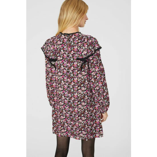 Cotton Frill Detail Tunic Dress from Mantaray. Feminine in print and luxuriously lightweight in fabric, opt for this statement women’s tunic dress. Boasting long relaxed-cut sleeves with elasticated cuffs, a comfortable circular neckline, frill dress detailing and a beautiful and intricate floral pattern finish. Style with black tights and knee-high leather boots. Made from100% Viscose. Wash at 30. Model wears a Size 10.