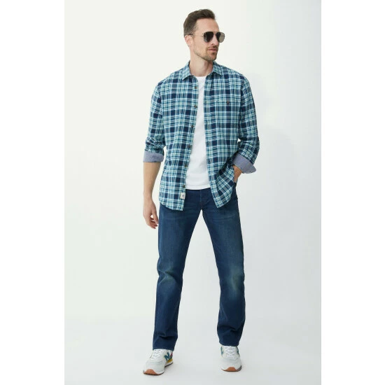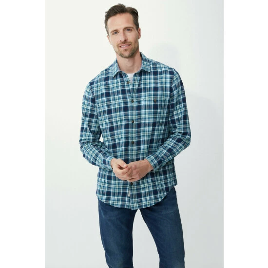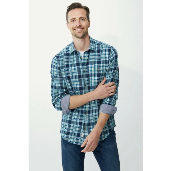 Dark base check shirt from Mantaray. Both contemporary and classic, this versatile smart casual checked shirt features a handy chest pocket, soft collar and long sleeves that can be worn rolled up or down. Crafted from a 100% cotton, this regular-fit style is roomy enough to layer over T-shirts or Henley tops and is also perfect for layering under knitwear.
