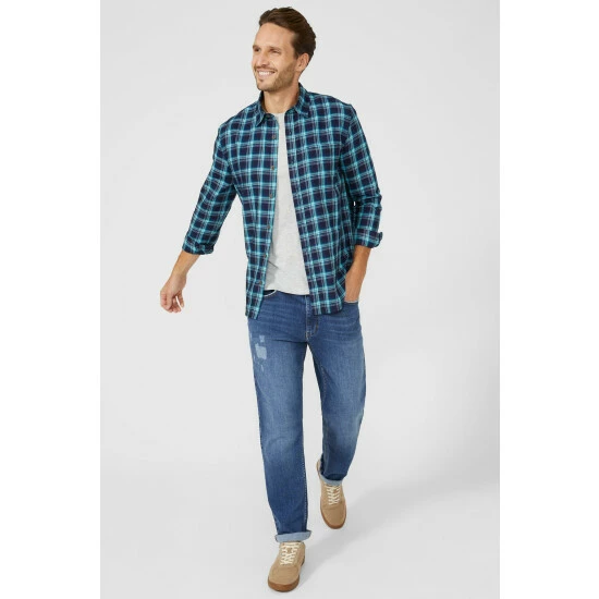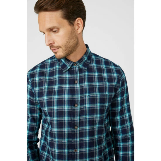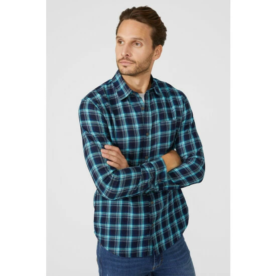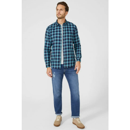 Dark Based Shadow Check Shirt from Mantaray. Smart in design and crafted from the softest fabrics, discover this season’s must-have men’s check shirt. Boasting long sleeves with buttoned cuffs, a smart collar neckline, front button detailing and a tailored cut finish for the optimal fit. Made from 100% Cotton. Wash at 40. Model wears a Size M.