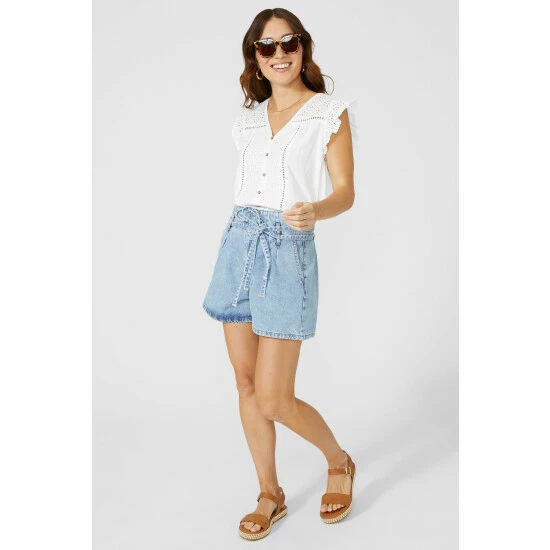 Double Loop Denim Short from Mantaray. Opt for flattering denim styles that are perfect to wear all season long with these chic women’s denim shorts. Boasting a high waist cut with a self-tie denim belt to cinch the waist, double loop detailing and a tailored cut finish for a figure-flattering aesthetic. Crafted from 98% Cotton. 2% Elastane. Wash at 30. Model wears a Size 10.