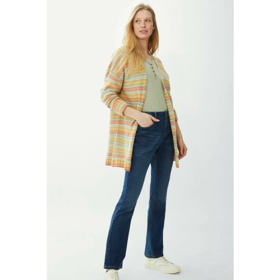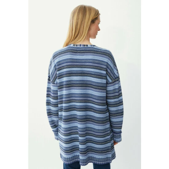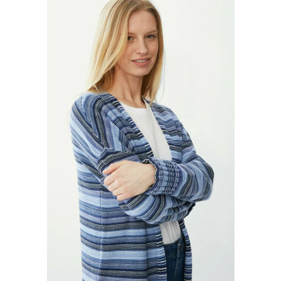 Edge to edge multi stripe cardigan from Mantaray. A great addition to your casual knitwear, this striking textured cardigan is the perfect extra layer to throw on when the temperature dips. Featuring a multi stripe print all-over and rolled cuff sleeves.