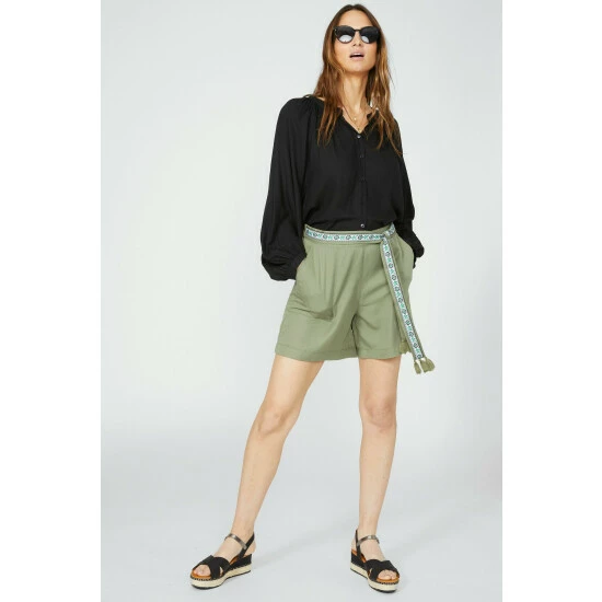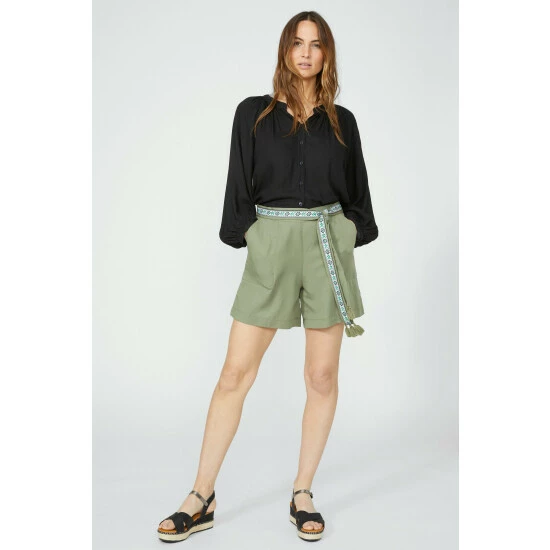 Embroidered tie belt paperbag short from Mantaray. Casual and comfortable without sacrificing on style, this short has been designed to sit high on the waist and features an embroidered self-tie belt with tassels and side pockets. Pair with a shirt and sandals for an easy-breezy weekend style.