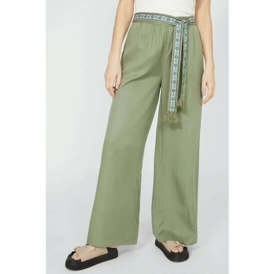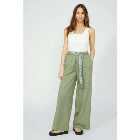 Embroidered tie belt paperbag trouser from Mantaray. Casual and comfortable without sacrificing on style, this trouser has been designed to sit high on the waist and features an embroidered self-tie belt with tassels and side pockets. Pair with a shirt and sandals for an easy-breezy weekend style.