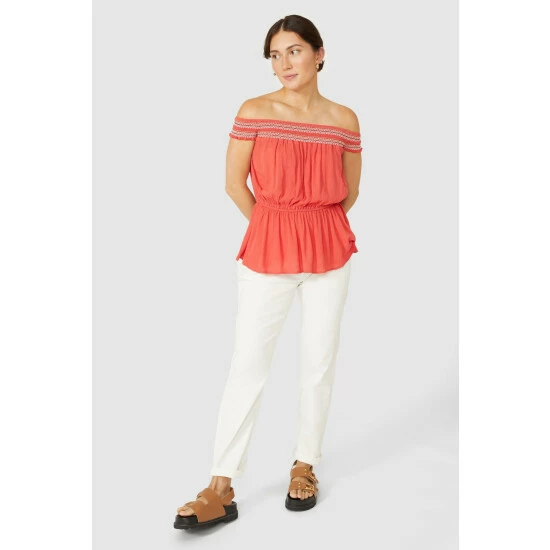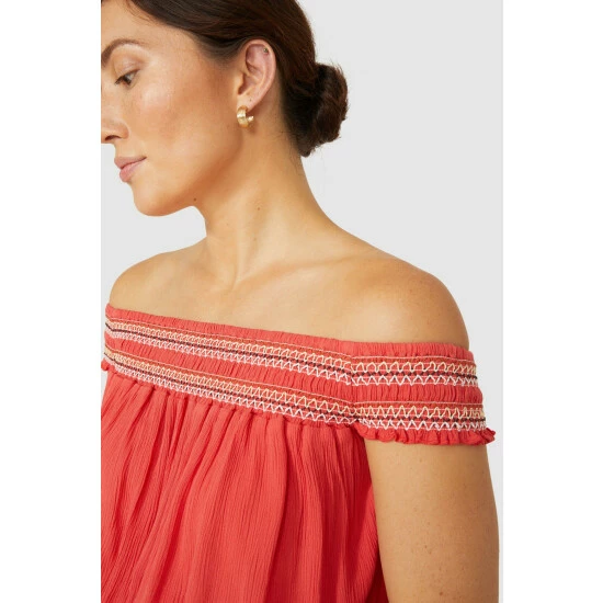 Embroidered Smock Bardot Crepe Top