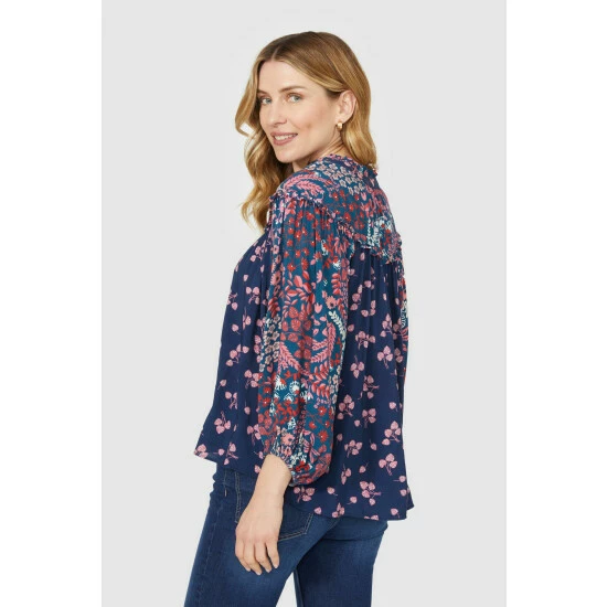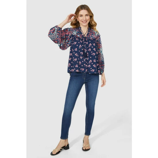 Floral Mix & Match Print Frill Neck Top from Mantaray. Opt for cute, bohemian-inspired styling this season and discover this beautiful women’s top. Boasting a floral print design with a front tie detail, trendy balloon sleeves and front buttons. Complete the look and coordinate with your favourite denim jeans and summer sandals. Crafted from 100% Viscose. Wash at 40. Model wears a size 10.