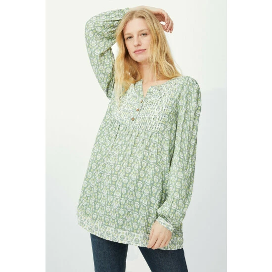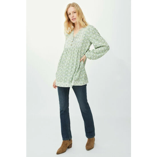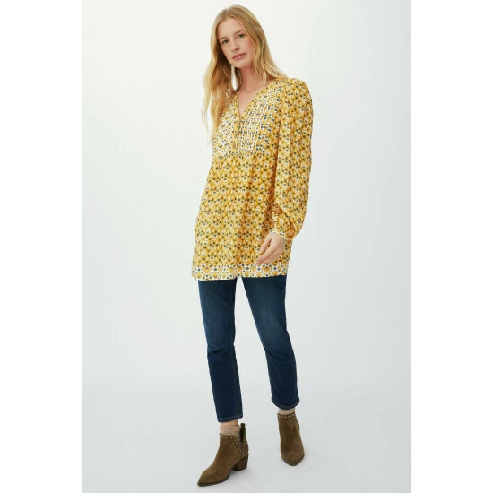 Floral mix and match print tunic from Mantaray. In two pretty mix and match floral prints, this stylish trapeze-cut tunic features balloon sleeves, a V-neck with pretty lace trim and a button-through front fastening. Wear with blue jeans and heeled ankle boots for lunch with the girls. Also available in other colours.