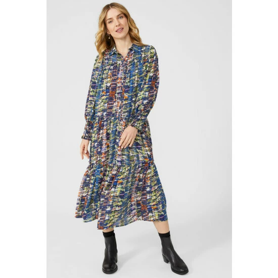 Floral Print Button Through Shirt Midi Dress
