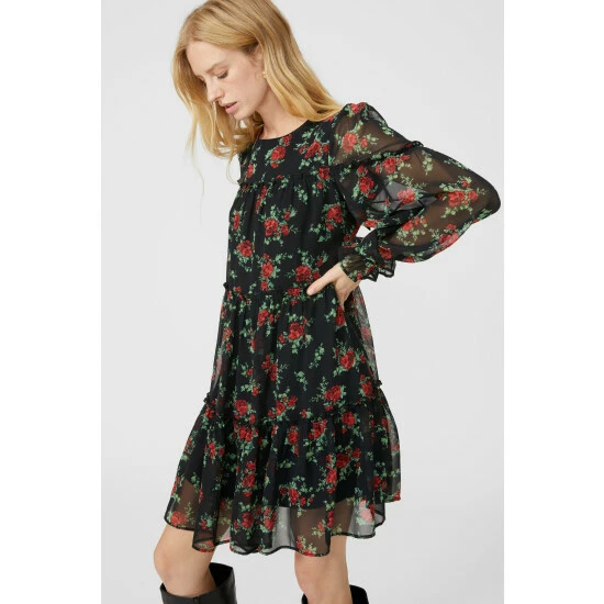 Floral Print Chiffon Tiered Tunic Dress from Mantaray. Enhance your style with elegant dress prints crafted from fine fabrics and look to this beautiful women’s tunic dress. Boasting long sleeves with frill cuff detailing, a self-tie back design, chiffon dress embellishments and a stunning floral print aesthetic. Made from 100% Polyester. Wash at 40. Model wears a Size 10.