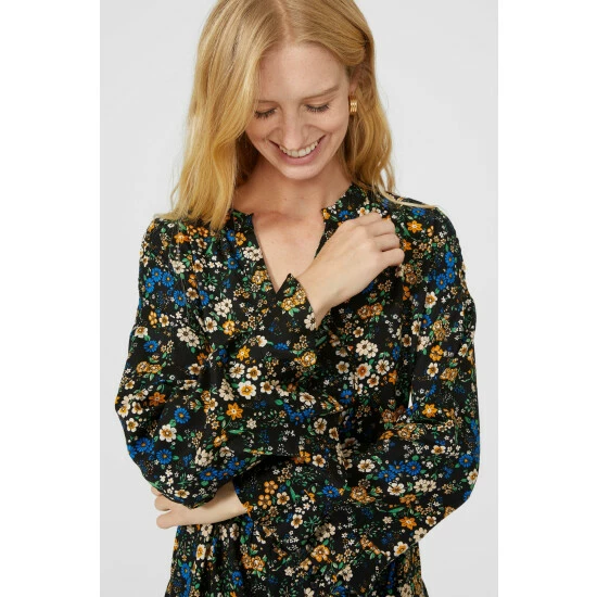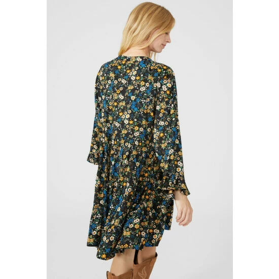 Floral Print Tiered Detail Mini Dress from Mantaray. Effortlessly elegant and crafted from luxe fabrics, look to this statement women’s mini dress. Boasting long comfortable sleeves, a skin-showing V neckline and a beautiful floral print pattern finish. Crafted from 100% Viscose. Wash at 30. Model wears a Size 10.