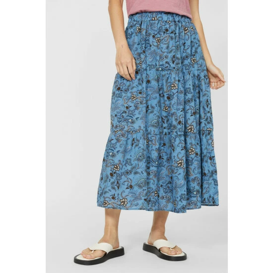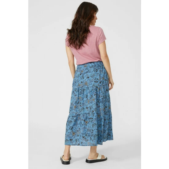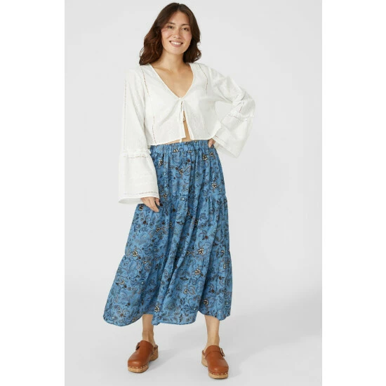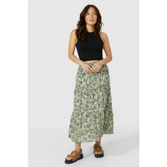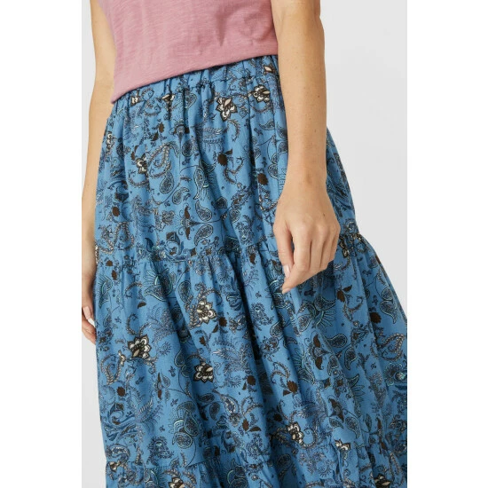 Floral Print Tiered Midi Skirt