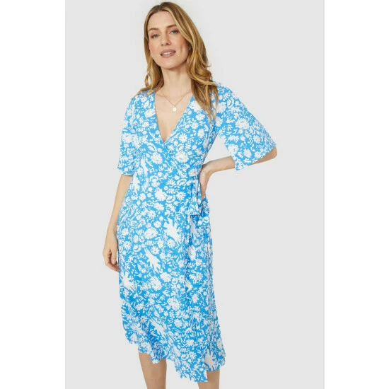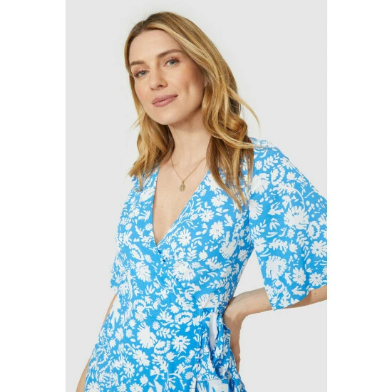 Floral Print Wrap Front Angel Sleeve Dress