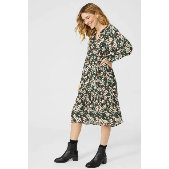 Mantaray Floral Printed Frill Detail Midi Dress For Female