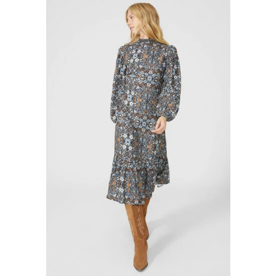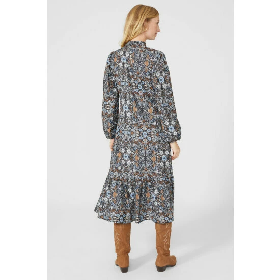 Leafy Floral Printed Crepe Midi Dress from Mantaray. Redefine your look with classic dress prints crafted from luxe fabrics and choose this timelessly elegant midi dress. Boasting long puff-style sleeves, a high cut neckline and a beautiful leafy floral print finish. Match with knee-high boots and accessorise with statement jewellery. Made from 100% Polyester. Wash at 40. Model wears a Size 10.