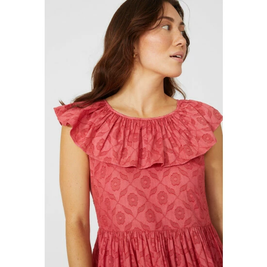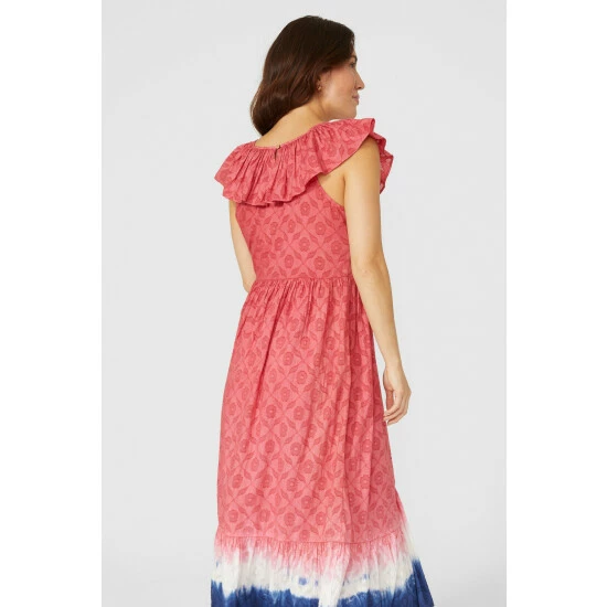 Frill Neck Tie Dye Jacquard Maxi Dress