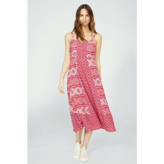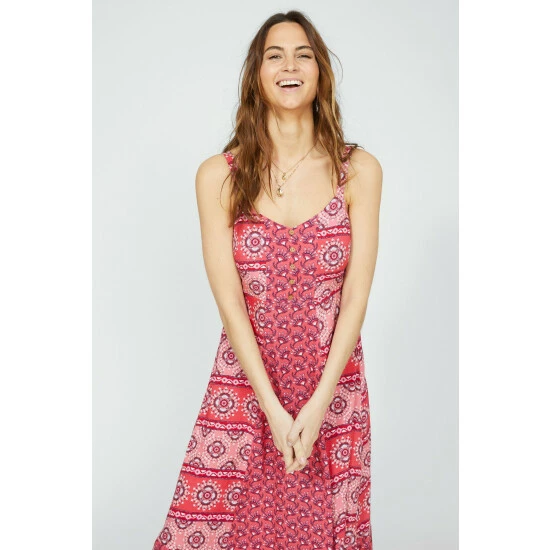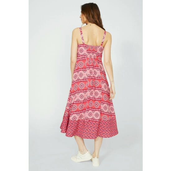 Kaleidoscope stripe print dress from Mantaray. This dress will surely make you stand out from the crowd. In a stunning mix of prints, this dress features a feminine neck line, placket buttons and a flowy silhouette.