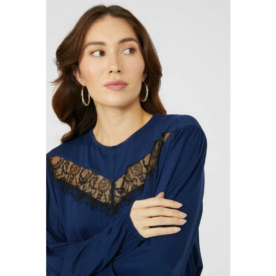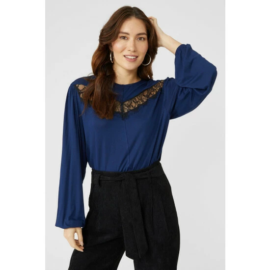Lace Insert Long Sleeve Top from Mantaray. Opt for a refined occasionwear look with this beautiful lace long sleeve top for women. Featuring long super-soft sleeves with stretch cuffs, a circular cut neckline with lace insert detailing and a tailored cut finish for the ultimate fit. Made from 95% Cotton, 5% Elastane. Wash at 30. Model wears a Size 10.