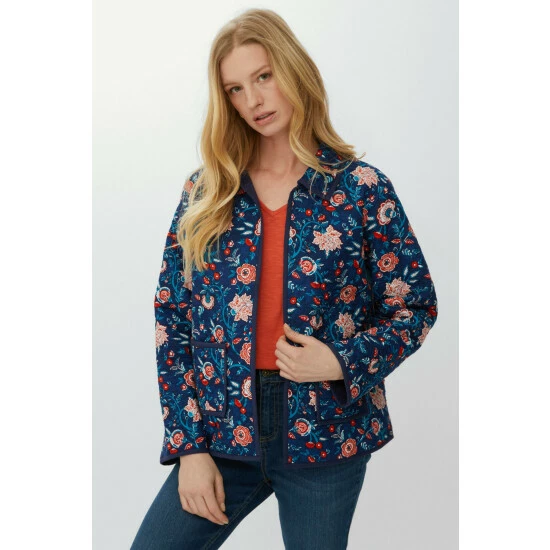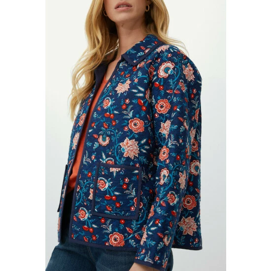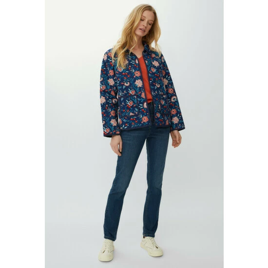 Leafy Floral Print Collar Quilted Jacket from Mantaray. Quilted floral print jacket from Mantaray. Ideal for transitional dressing, this jacket has been designed from a quilted fabric with a floral print all-over and features two front pockets, a collar, and plain trims. All you need is a soft jersey top underneath and jeans for a stunning look. Make this print collar quilted jacket your go-to inner and outer layer piece this season and beyond. Crafted from 100% Cotton. Wash at 40. Model wears a Size 10.