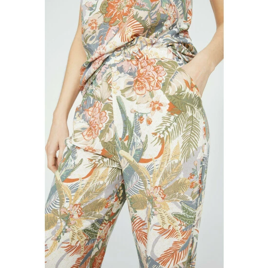 Strappy leafy floral print soft trouser from Mantaray. Designed in a stunning mix of prints, this trouser has been crafted from a soft and lightweight fabric and is cute in a relaxed fit with a comfy waistband and side pockets.