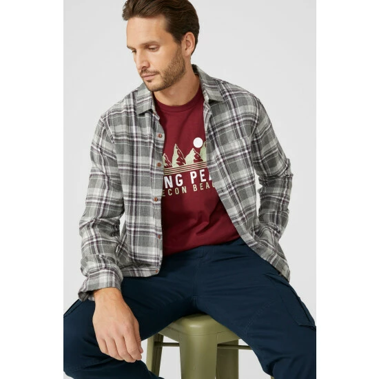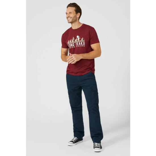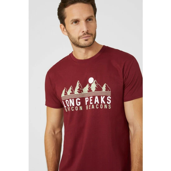 Long Peaks Printed Tee from Maine. Easy-to-style and comfortable in design, look to this practical men’s printed tee. Boasting short-cut sleeves, a comfortable neckline, a Long Peaks printed logo and a tailored cut finish for the perfect fit. Made from 100% Cotton. Wash at 30. Model wears Size M.