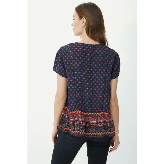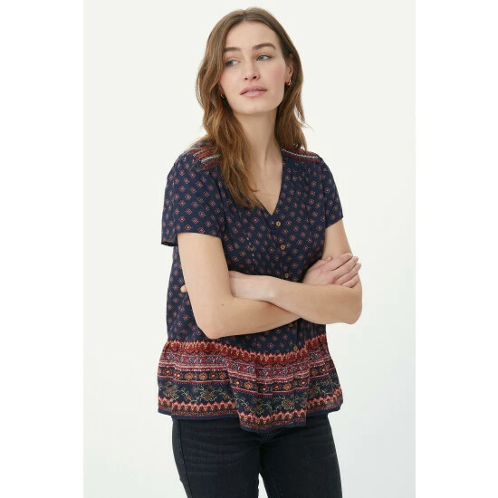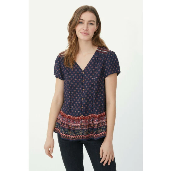 Lotus print V-neck top from Mantaray. Exuding an exotic vibe with a vibrant lotus print all over, this pretty V-neck top won’t go unnoticed. Featuring a flattering peplum waist, this versatile style looks great with skinny, wide-leg or even flared jeans.