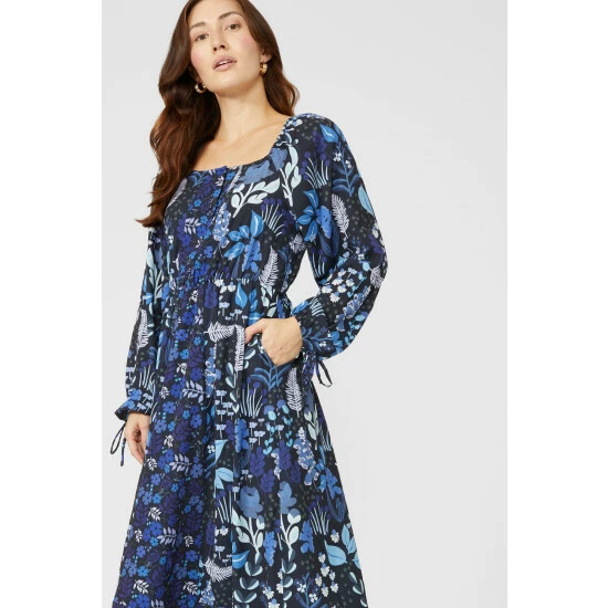 Mix & Match Print Long Sleeve Dress from Mantaray. Inject strikingly beautiful dress designs into your wardrobe and embrace this women’s long sleeve print dress. Featuring long sleeves with bow tie cuffs, a deep cut neckline, side pockets, a floral print aesthetic and a tailored cut finish for ultimate fit. Crafted from 100% Polyester. Wash at 30. Model wears a Size 10.