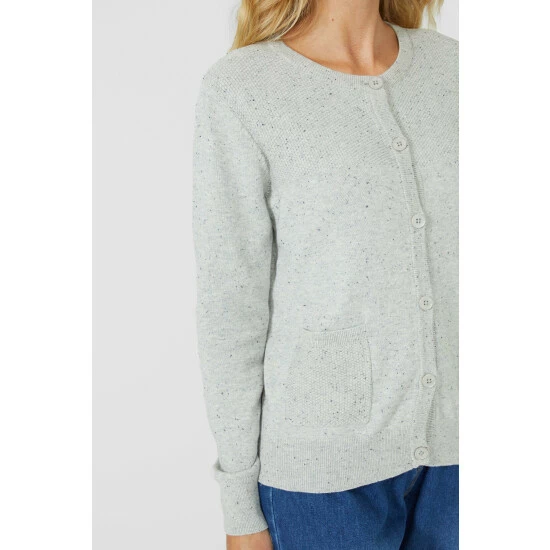 Moss Stitch Button Cotton Nep Crew Cardigan from Mantaray. Elevate your knitwear attire with beautiful designs and opt for this chic cotton nep crew cardigan. Featuring long comfortable sleeves with stretch cuffs, front pockets and small front buttons and a tailored cut finish for the perfect warm fit. Made from 100% Cotton. Wash at 40. Model wears a Size 10.