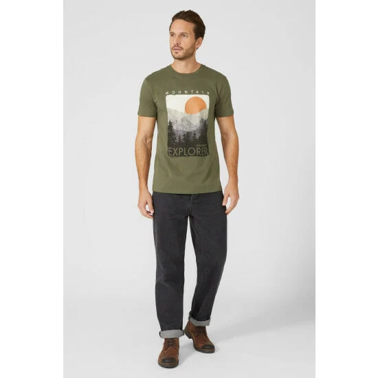 Mountain Explorer Printed Tee from Mantaray. Easy-to-wear and super comfortable in design, opt for this practical men’s printed tee. Featuring short-cut sleeves, a comfortable neckline, a Mountain printed logo and a tailored cut finish for the ultimate fit. Crafted from 100% Cotton. Wash at 30. Model wears Size M.