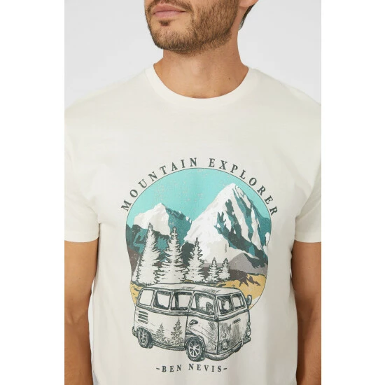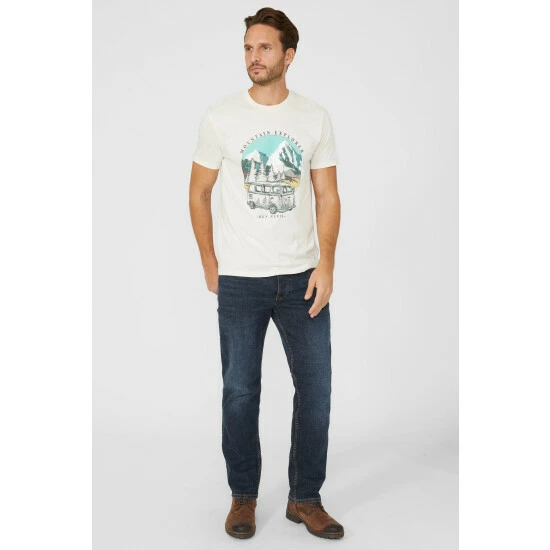 Mountain Explorer Van Printed Tee from Mantaray. Easy to wear and crafted from premium fabrics, look to this men’s printed tee this season. Boasting short-cut sleeves, a comfortable neckline, a cool printed tee logo and a tailored cut finish for the ultimate fit. Made from 100% Cotton. Wash at 30. Model wears a Size M.