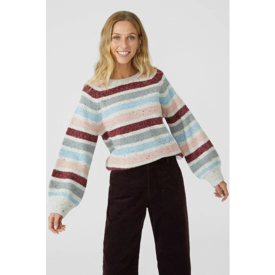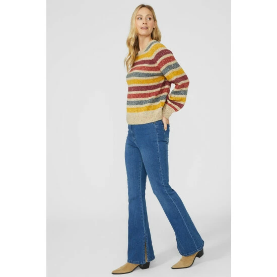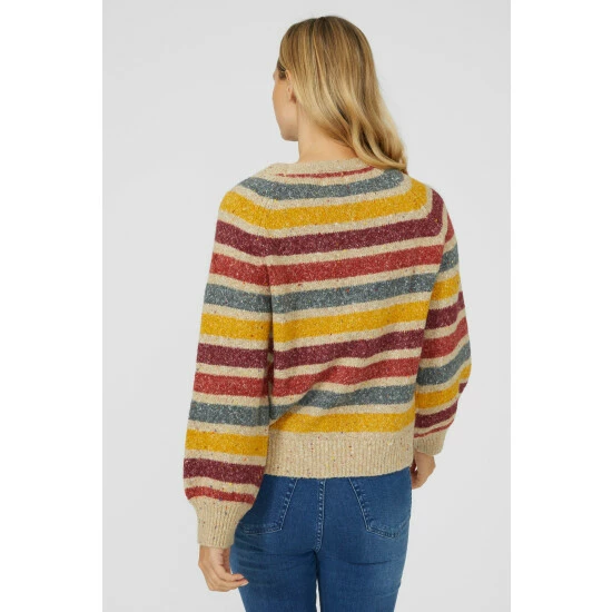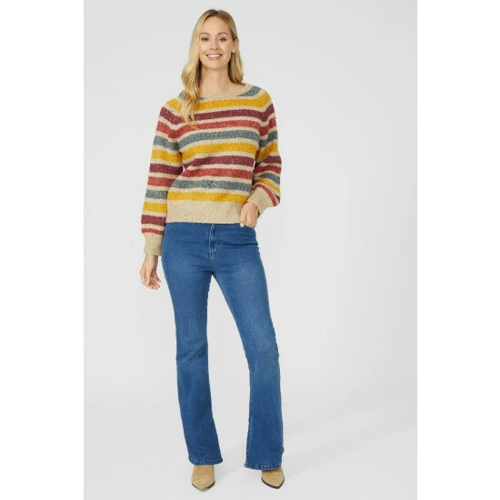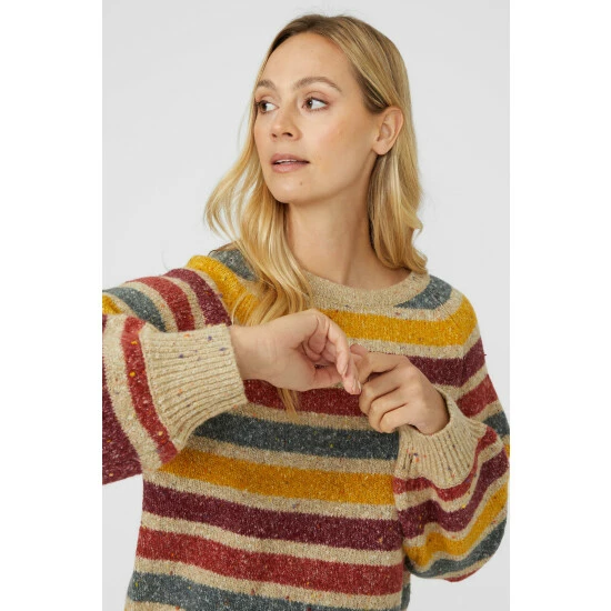 Narrow Stripe Chunky Nep Crew Neck Jumper from Mantaray. Modify your knitwear style with vibrant designs and seasonal colours and choose this stripe crew neck jumper for women. Featuring long soft sleeves with stretch cuffs, a comfortable crew neckline, beautiful stripe detailing and a tailored cut finish. Crafted from 57% Acrylic, 24% Polyester, 19% Cotton, 1% Elastane. Wash at 30. Model wears a Size 10.