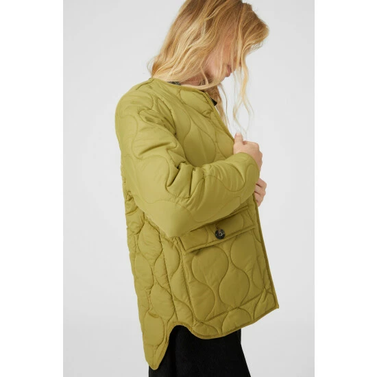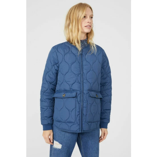 Padded Quilted Jacket from Mantaray. Collarless Quilted Curved Hem Jacket from Mantaray. Add super cosy jacket styles into your wardrobe this season and discover this beautiful women’s quilted jacket. Boasting long padded sleeves, a comfortable hoodie design, front pocket detailing with popper buttons and a chic all-over quilted pattern finish. This quilted jacket is the perfect inner and outer layer piece for seasons ahead. Crafted from 100% Polyester. Wash at 40. Model wears a Size 10.