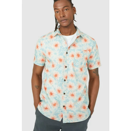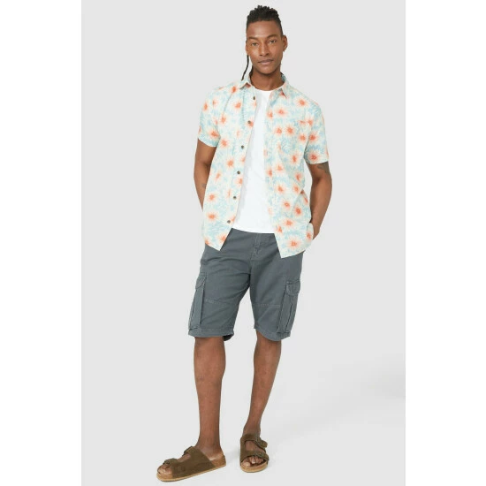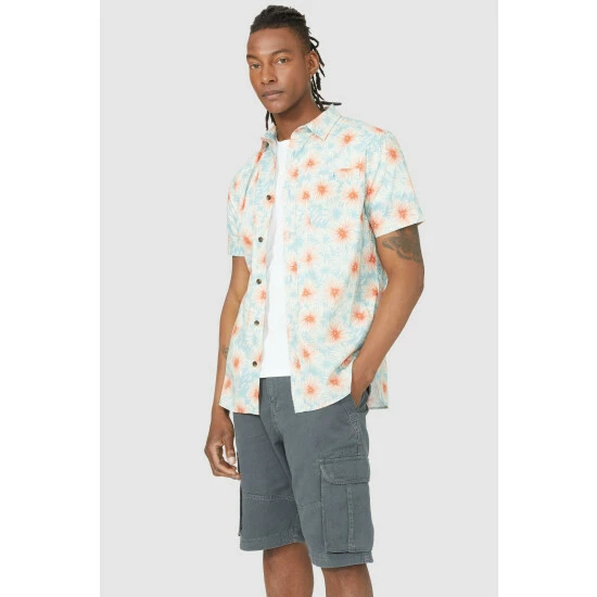 Palm start print shorts sleeve shirt from Mantaray. Get ready for the new season in exotic prints. Featuring a palm star print all over, placket buttons, a front chest pocket and half sleeves. Looks just as good with shorts or jeans, paired over a plain tee.