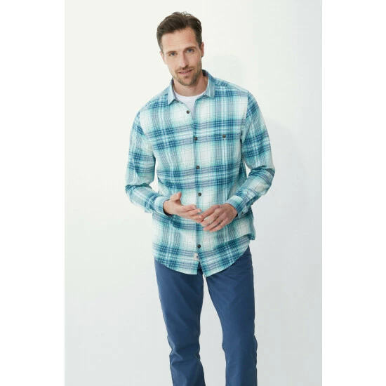Pastel check shirt from Mantaray. Inject a breath of fresh air into your casual wardrobe with this check shirt. This versatile smart casual check shirt features a handy chest pocket, soft collar and long sleeves that can be worn rolled up or down. Crafted from a 100% cotton, this regular-fit style is roomy enough to layer over T-shirts or Henley tops and is also perfect for layering under knitwear.