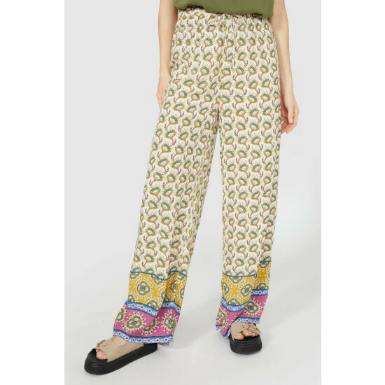 Patchwork Border Print Trouser from Mantaray. Opt for striking trouser styles this season and update your clothing wardrobe with these eye-catching women trouser. Boasting a striking all-over patchwork print with an elasticated waistband for optimal comfort and a high-waist trouser fit. Style with a casual daytime top and chunky sandals. Made from 100% Viscose. Wash at 40. Model wears a size 10.