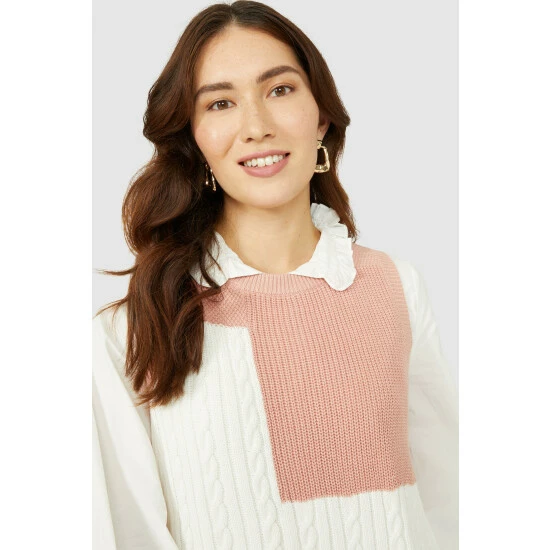 Patchwork Cable Cotton Crew Neck Tank from Mantaray. Update your knitwear collection with beautiful designs crafted from super-soft fabrics and select this patchwork cable cotton crew neck tank for women. Featuring sleeveless arms, a comfortable stretch crew neckline, patchwork cable detailing and a tailored cut finish. Made from 100% Cotton. Wash at 40. Model wears a Size 10.