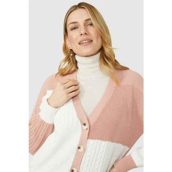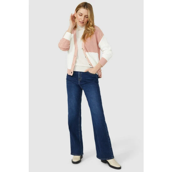 Patchwork Cable Cotton V Neck Cardigan from Mantaray. Beautiful in style and crafted from the softest fabrics, elevate your knitwear attire with this beautiful women’s cotton cardigan. Boasting long soft sleeves with stretch cuffs, a V cut neckline, horn button detailing and a chic patchwork design finish. Made from 100% Cotton. Wash at 40. Model wears a Size 10.