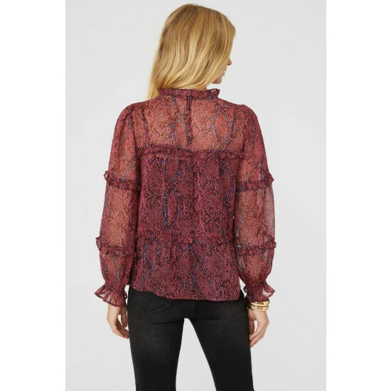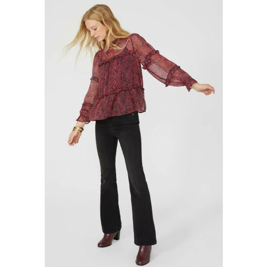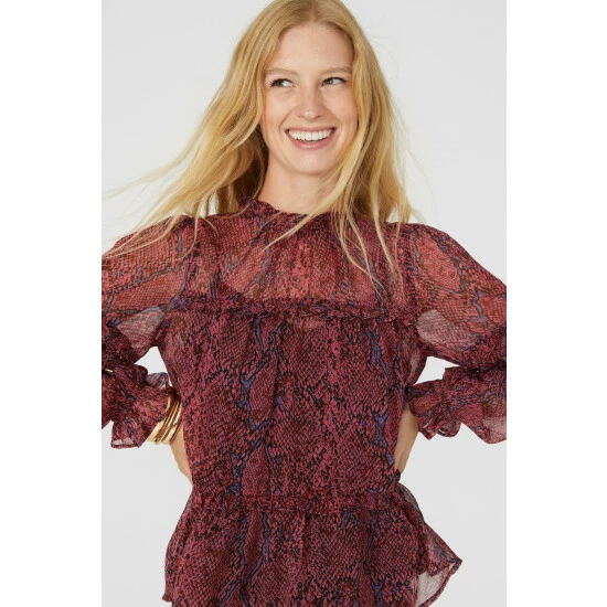 Printed Blouse With Ruffle Details from Mantaray. Update your occasionwear styling with effortlessly chic designs and opt for this beautifully created women’s printed blouse. Boasting long relaxed-cut sleeves with ruffle detailing, a high neckline, and a printed pattern blouse finish. Style with tailored trousers and with statement leather heeled boots. Crafted from 100% Polyester. Wash at 40. Model wears a Size 10.